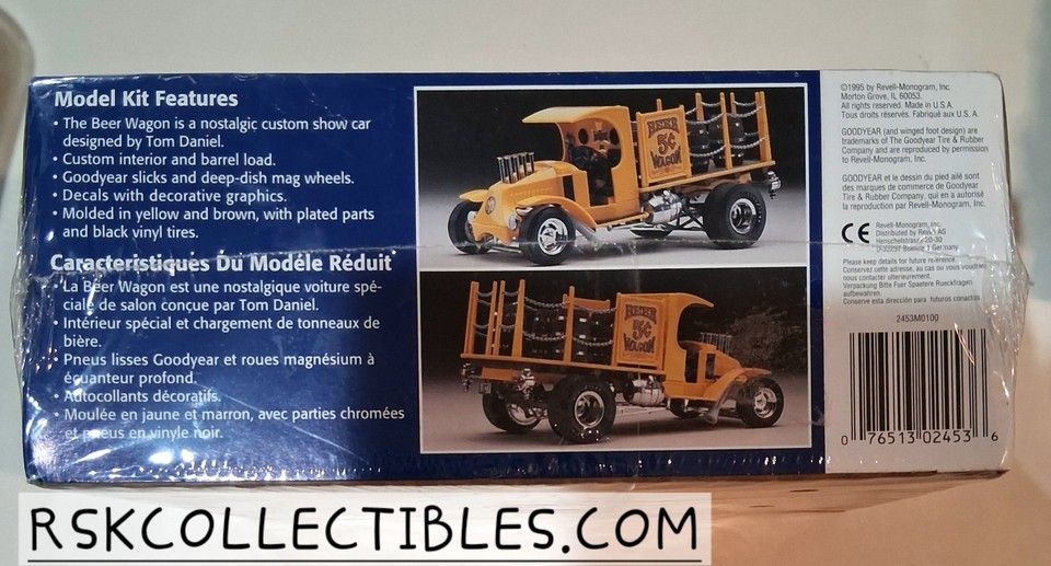 Classic Tom Daniel, Beer Wagon plastic model kit by Monogram. 1995 sealed package, #2453. Box is very sturdy with good corners and no fading on the box art. Very little plastic shrinkage. Made in the USA, this kit includes the instruction sheet and waterslide decals. Add this hard-to-find classic kit to your collection today!